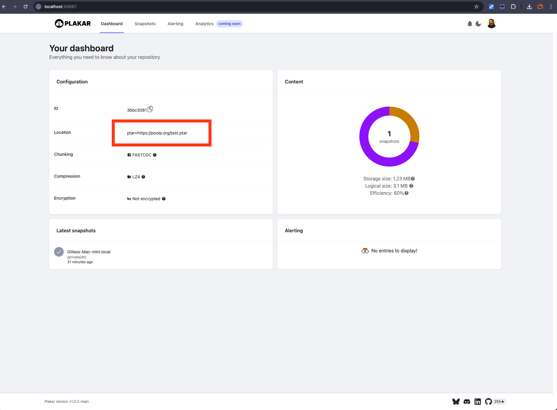 A .ptar builder and reader are implemented into plakar, so creating and interacting with archives doesn’t require extra tooling. Everything happens via the CLI.