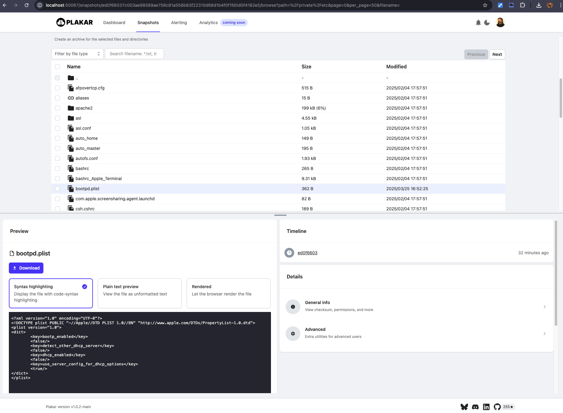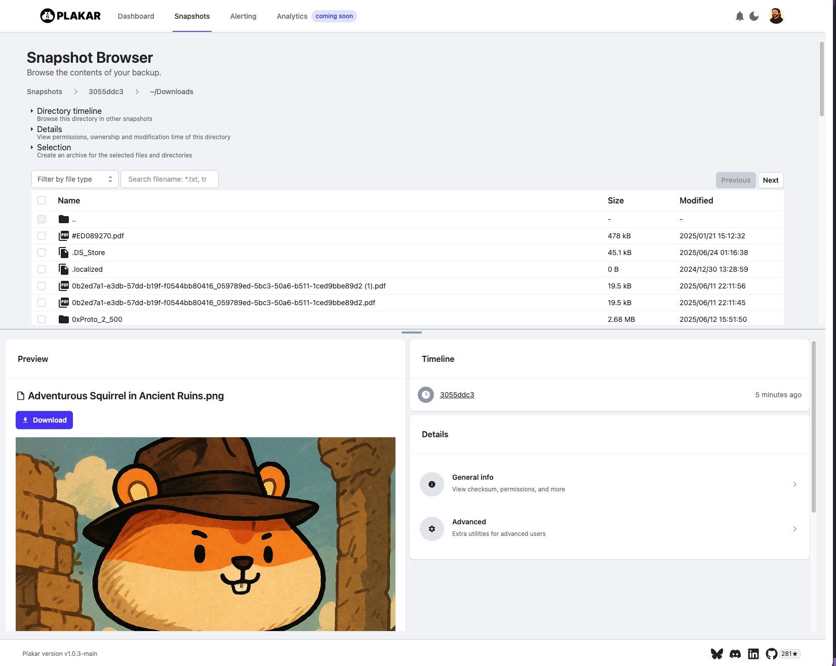 $ plakar at downloads.ptar ui